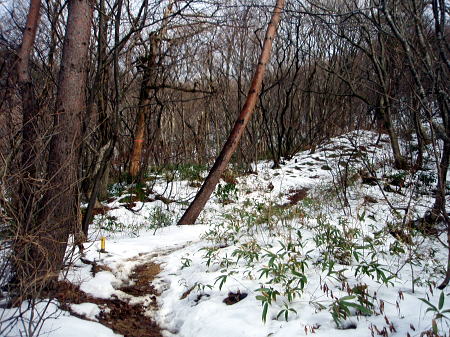 工事用山道は踏み後も無く、気持ちよく歩く。