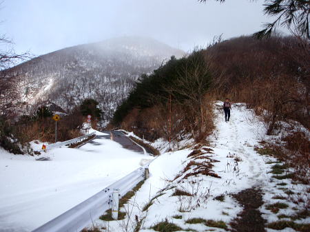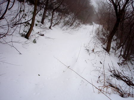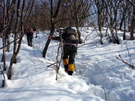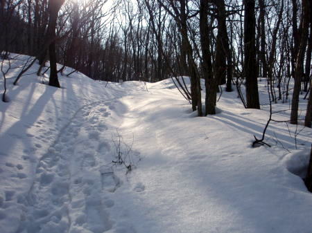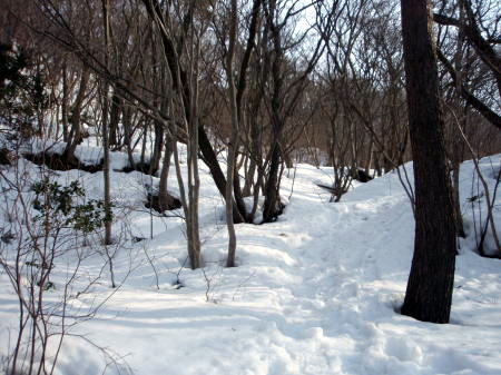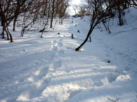 今日はやや冷え込み踏み跡が氷っていて歩きづらい。