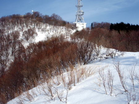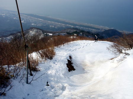 聞くとスキーで登山道を登り、下りはスカイラインを滑って下りてくるとのこと。
