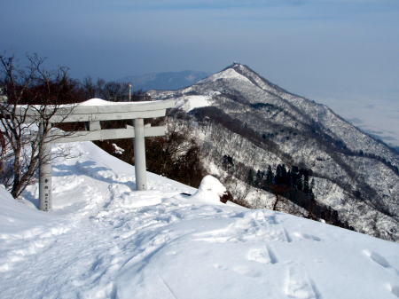 山頂の鳥居はカマクラの前におかれたような状態になっていた。