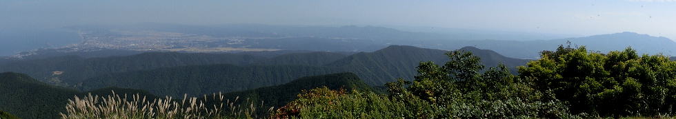 | 山頂から上輪橋、中ノ岳、北越自動車道 | 柏崎原発、奥にぼんやり弥彦山 |