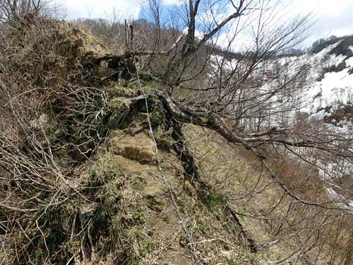 | クサリ場 | 細尾根の奥に米山 |