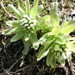 | 2017/4/23 駐車口--折居登山口-----黒姫山山頂-----折居登山口--駐車口 10:25 10:30 12:05(12:15) 1:30 10年ぶりに黒姫山へ出かけた。 柏崎方向からR353を進み上向へ左、右と思いだしながら駐車口に到着。 2台止まっていてそのうちの1台の車のドアに「mont,◇bell」のロゴがあった。 駐車口から折居川沿いに林道を歩く。右手の棚田の畔には沢山のフキノトウが出ている。 前方に黒姫山も良く見える。 折居登山口につく。 この登山口付近に昨年6月クマが目撃されている。 いちよう見渡す。 網鉄橋を渡り杉林へと登って行く。 そして新緑の雑木林の尾根を歩く。 ショウジョウバカマ、カタクリが続く。 ブナの多い雑木林は残雪も現れる。 標高600m付近の細尾根からは雪割草が沢山咲いていた。 両サイド切れ落ちたクサリ場の極細尾根を慎重に進む。 渡りきり振り向くと細尾根の先に米山が良く見える。 右手奥には弥彦山もみえる。 雪斜面の木々の新緑はまだのようだ。 ブナ林の残雪歩きは気持ちがいい。 上部の稜線に小屋が見えてきた。 ひと登りして小屋のたつ山頂に到着。 山頂には別ルートから登ってきたグループが昼食タイム。 山頂から越後の山々が広がっていた。 少し下った、ブナ林の中でコーヒーをたのしんだ。 下山は残雪、新緑と気持ちよく下る。 駐車口にくると地元の人が長い棒で木をたたいているように見えたので「なんですか」と尋ねると スモモの受粉をしているとのことで実がはいるのが7月ごろとか。 花やイノシシ、クマの事など話の後に「すぐそこの池に行ったか」と言うので聞くと、そこはミツガシワの 群生地とのことで、花はまだのようだが行って見た。 田んぼの反対側に下池が広がり黒姫山をちょうど望めた。 |