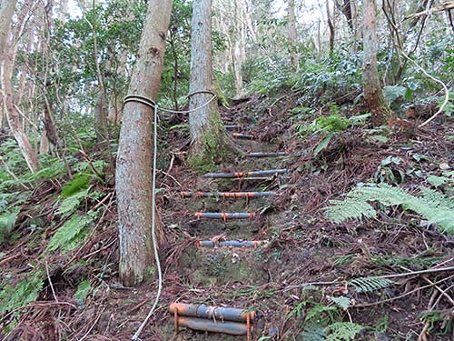 | 赤坂山 2月2日 弥彦山で雪割草が2輪咲いていると聞いたので赤坂山にもと思い出かけた。 神社口から登り本丸へ倒木は、ないようだ。 今年はもう少し海が見えるよう伐採したい。 二の丸から塚郡の山頂へ、ここももう少し伐採して海と弥彦山の展望を確保したいと思う。 まだ、ここでは雪割草は咲いていないようだ。 急な階段を下りホタル橋に到着。 ここではミズバショウの芽が出ていた、春が楽しみだ。 |