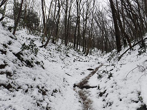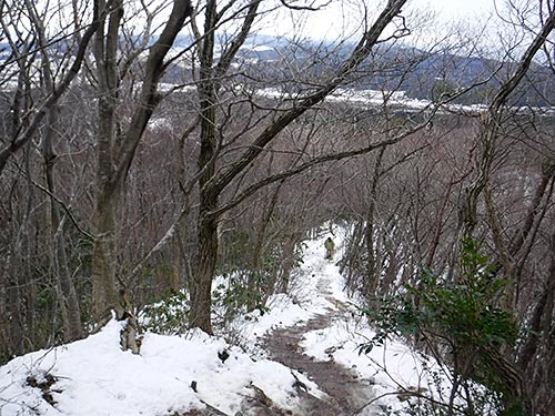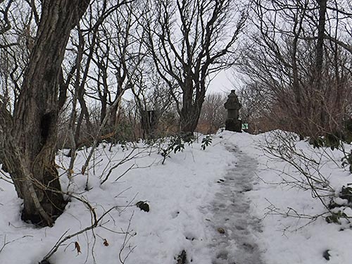 | 2025/1/6 神社前の池には氷が張っている。 山道のお地蔵様にも参拝してミシミシと歩く。 たぶん80代くらいの年配者のご夫婦と次々と挨拶をかわす。 私も80代で山を歩いていたい。 稚児道から国上寺にそしてまた山道へ。 振り向くと米山も展望できる。 展望台から国上山頂そして蛇崩れへ。 弥彦山方向、蒲原平野方向も木々が張り出し展望が以前より少し狭まっている。 倒木があり足跡は大きく回り込んでいる。 途中、山道脇に小さな雪だるまが。 目を入れようと思ったが、よけいなことはやめた。 途中、同級生とバッタリ。挨拶をかわす。 無事到着。あいかわらず道のえき(くがみ)は混んでいた。 |