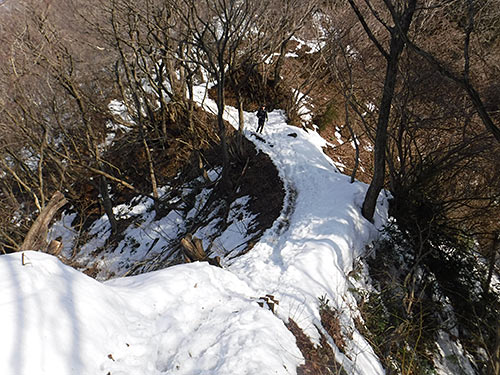 | 灯台ルート 2/14 久しぶりの晴れ間、海も穏やかt角田山へ向かう。 灯台岬から一気に登り展望台からの灯台の景色はすばらしい。 あんまり気持ちいいので岩場で休憩しさっそくコーヒーをいただいた。 格別な一杯。 何人かの人を追い抜く時に雪割草はもう少しだねーの会話が。 残雪も気持ちよく歩け山頂には多くの人がいた。 また今年もと三角点を触り、下山。 |