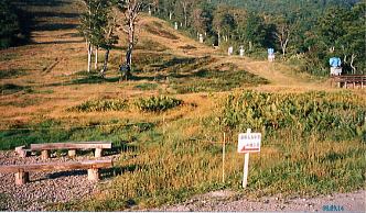 ゲレンデを右に横切り樹林に入っていく。