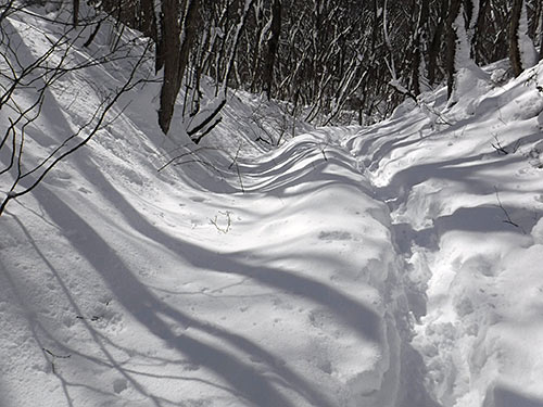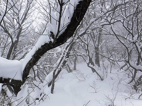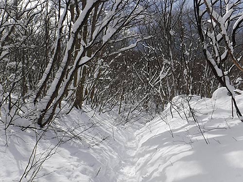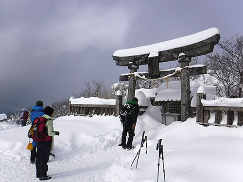 | 弥彦裏参道 1/3 弥彦山元旦の山歩きをずっとやってきたが、歳のせいか元旦の朝、家の雪かきをして 一服してコーヒーを飲んだら弥彦山は、後日にという気持ちになってしまった。 3日、風はやや強かったが、時折、陽ざしも差し込んで気持ちいい歩きとなる。 雪の山道は、きれいに道が付いている。 たぶんスノーシューを履いての人達でできた道跡だろう。 山頂の展望はあまりきかなかったが、今年も平和を願って手を合わせた。 |