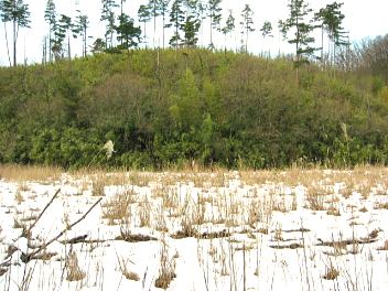 少し右に巻いて216mの山の尾根を進む。