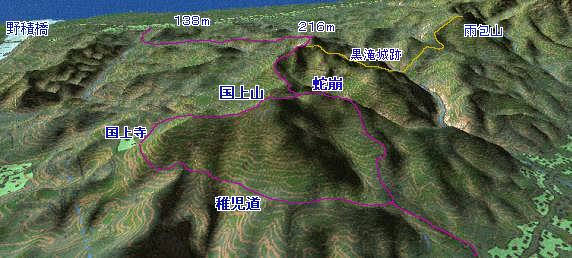 国上寺−国上山山頂−蛇崩れ−黒滝城跡−猿ヶ馬場−黒滝城跡−国上山−国上寺